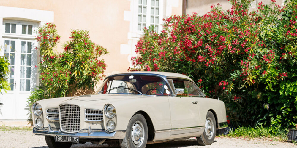 This 1959 Facel Vega HK 500 was originally finished in black with a red leather interior, manual gearbox, Rudge wheels and disc brakes all round. Originally registered to the firm Allainguillaume & Patin, a coal supplier, it later passed to Jean Berthier, who registered it in Paris in May 1961. In 1974 it was sold to a resident of Nancy, before being acquired by a garage owner in Viroflay who placed it into storage in 1979.