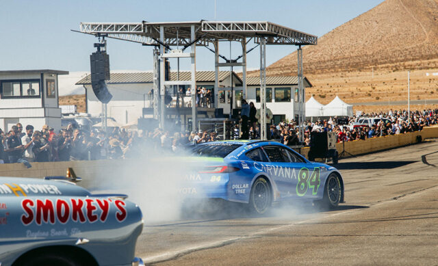 The nine-turn ‘Big Willow’ circuit hosted an all-star B-Sedan race featuring Jimmie Johnson, Jenson Button and Dario Franchitti, with further demonstrations from the Petersen Automotive Museum, Singer and Czinger. Johnson also drove his No 84 Carvana Toyota Camry in a brief on-track appearance.