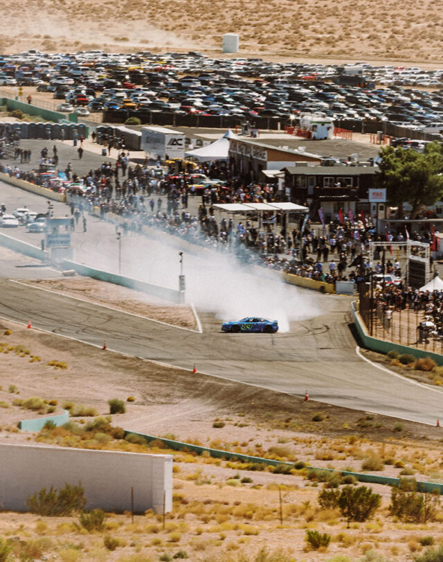 Elsewhere, Formula Drift commentator Jarod DeAnda led proceedings, joined by The Smoking Tire podcast team, while displays included Ken Block’s personal cars presented by the 43 Institute and full-size Hot Wheels models. An exciting line-up of DirtFish rally legends, including the iconic Lancia 037, Lancia Delta S4, Peugeot 205 T16 and other DirtFish School cars, offered a glimpse of a world-class rally experience. Hoonigan’s Hoonipigasus Porsche and Micah Diaz’s E46 Pro-Spec drift car also drew crowds. The Drivers Era curated event merchandise, and a share of proceeds will support the East Kern Family Resource Center and the Lost Angels Career Center.