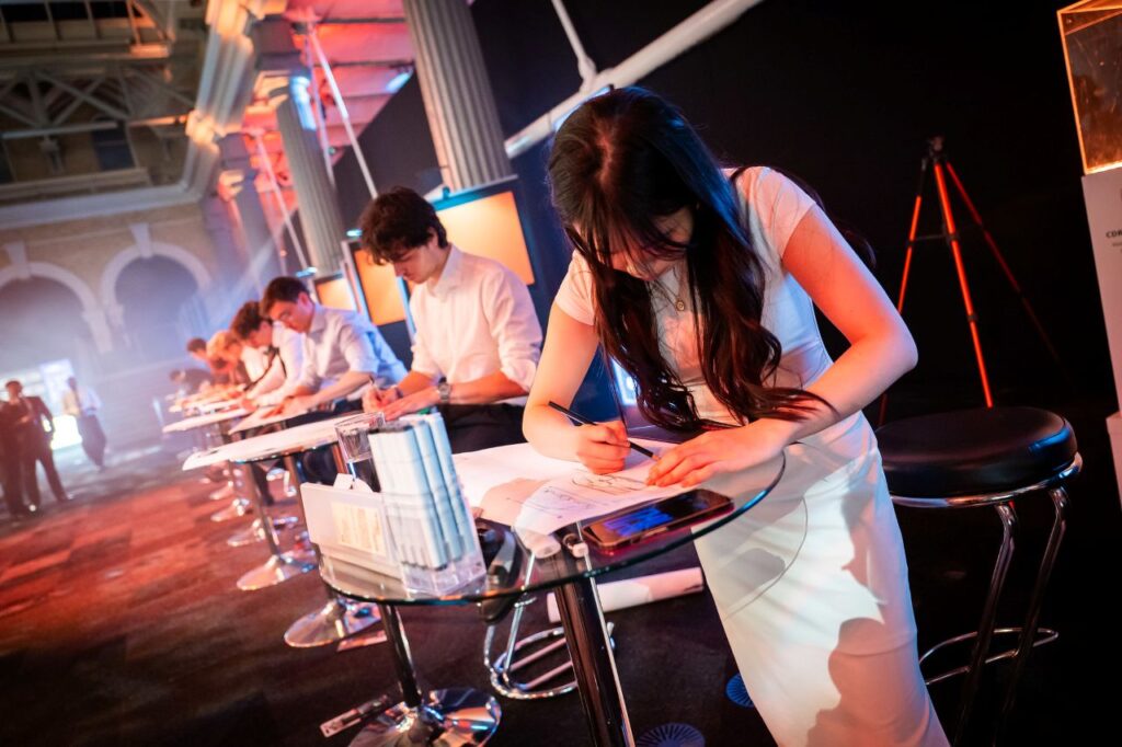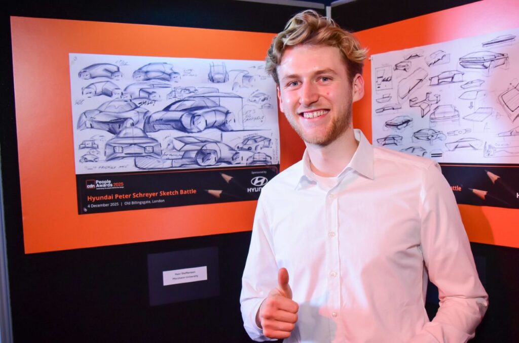 Over to one side stood ten students from five of Europe’s finest car design institutions, each working feverishly against the clock in the Peter Schreyer Sketch Battle. It was the distinctively spectacled Schreyer who had set the evening’s “pencil over prompts” brief – a one-hour contest to sketch a small Hyundai EV created for the next generation of city dwellers. The winner, announced by Schreyer after a superb three-course dinner, was Pforzheim University’s Peer Steffensen. Somewhat ironically, I’d interrupted the young designer mid-battle to register my appreciation of his work and to quiz him on which AI rendering tools he’s currently most impressed with. Don’t tell Peter.