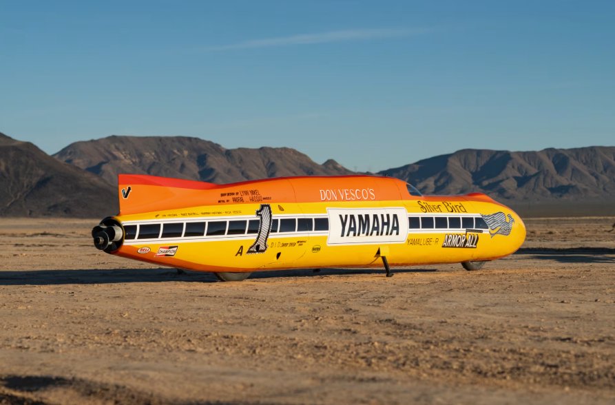 During the 1970s Vesco developed the Silver Bird, a radically streamlined motorcycle driven by a pair of Yamaha TZ750 engines. Each two-stroke powerplant displaced 750cc, producing combined muscle of between 300bhp and 320bhp, and they sat in an aluminium monocoque over a chassis with a 20ft wheelbase.