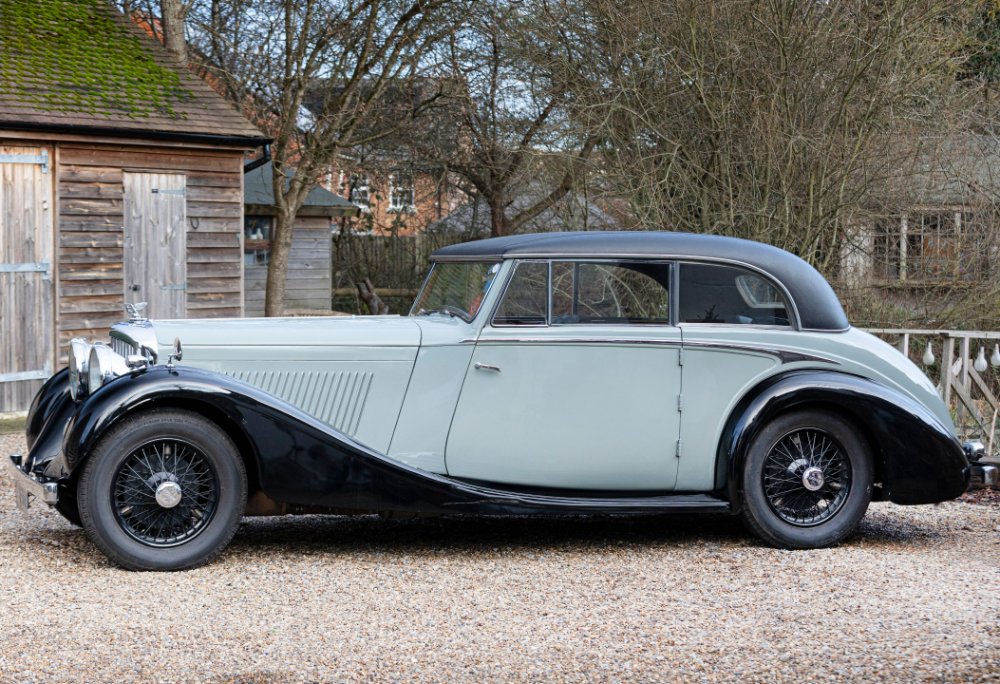 This car is understood to be the sole two-door coupé built by James Young on the Bentley Derby chassis, from a total of 70 Derby Bentleys bodied by the firm (35 examples of the Bentley 3½ Litre and 35 of the Bentley 4¼ Litre). The car was first registered as ‘NV 8000’ in September 1936, and its design was derived from the 1935 3½ Litre open tourer created for Prince Bira, which James Young subsequently adapted by incorporating a fixed roof.