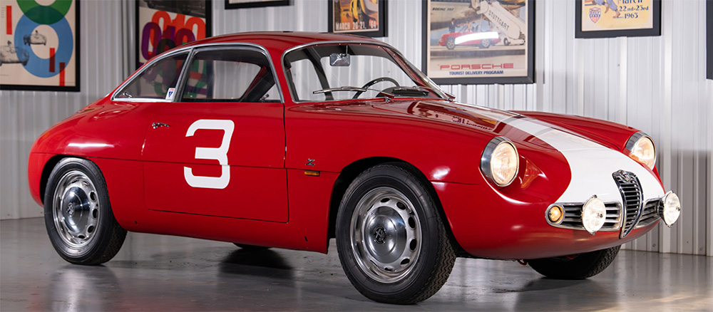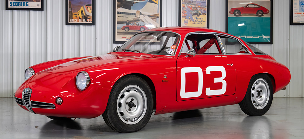 This 1960 Alfa Romeo Giulietta SZ, chassis 0037, was first delivered to Greek shipping magnate and racer Harry Theodoracopulos of Athens. Chassis 0037 made its way to the United States in the early 1960s, reportedly competing at a Bridgehampton, New York meeting in 1961. The car then headed south to the 1962 Sebring 12 Hours, serving as a back-up machine to Theodoracopulos’ Coda Tronca. Later that year, it returned to Bridgehampton for the Double 400, where it is understood to have been co-driven by Theodoracopulos and Freddie Barrette, finishing ninth overall.