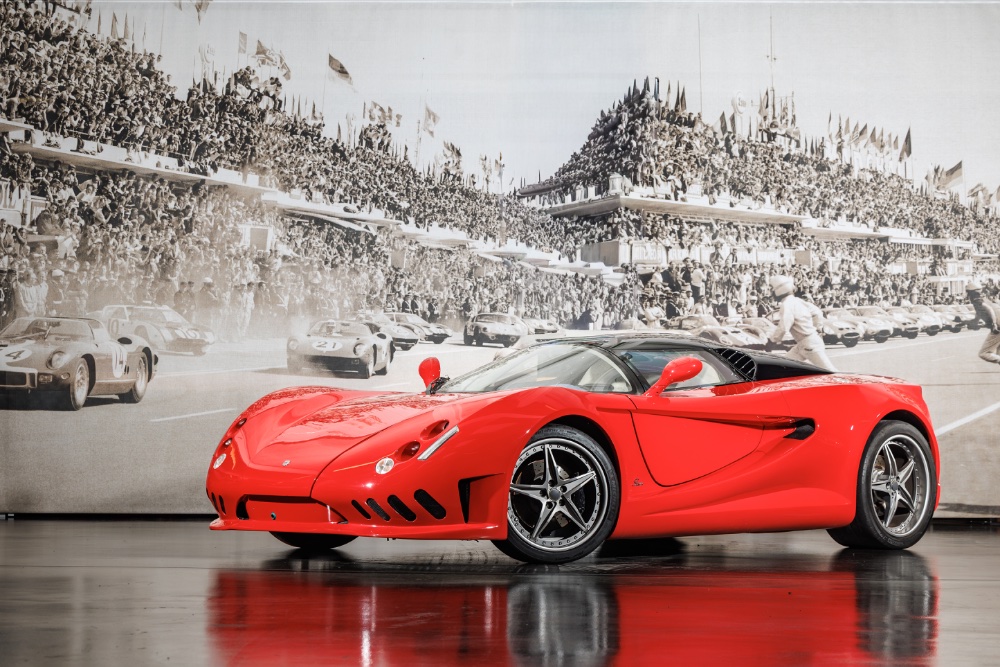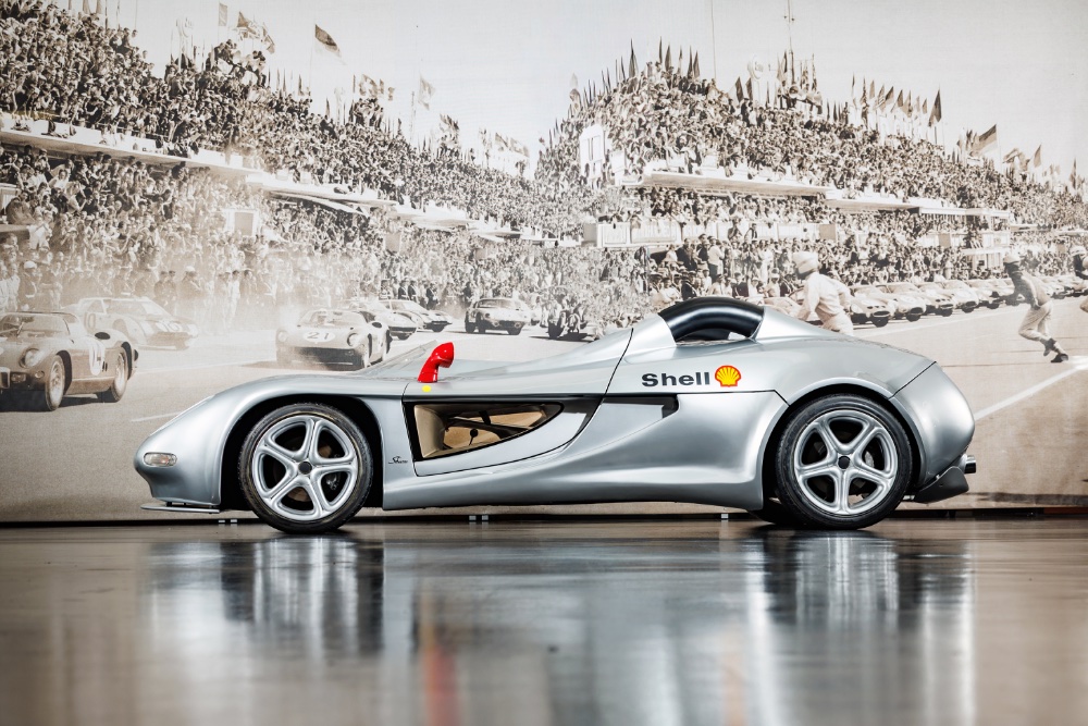 This is the 1995 Sbarro Alcador Roadster, based on a Ferrari Testarossa. The car was developed by students at Franco Sbarro’s Espera centre in response to a commission from Ludwig Binder, who requested a bespoke Ferrari Testarossa. Sbarro first instructed the students to drive the donor Testarossa at the Lignières circuit to familiarise themselves with its performance characteristics before commencing the design of the polyester-bodied concept. The completed car was presented at the 1995 Geneva Motor Show.
