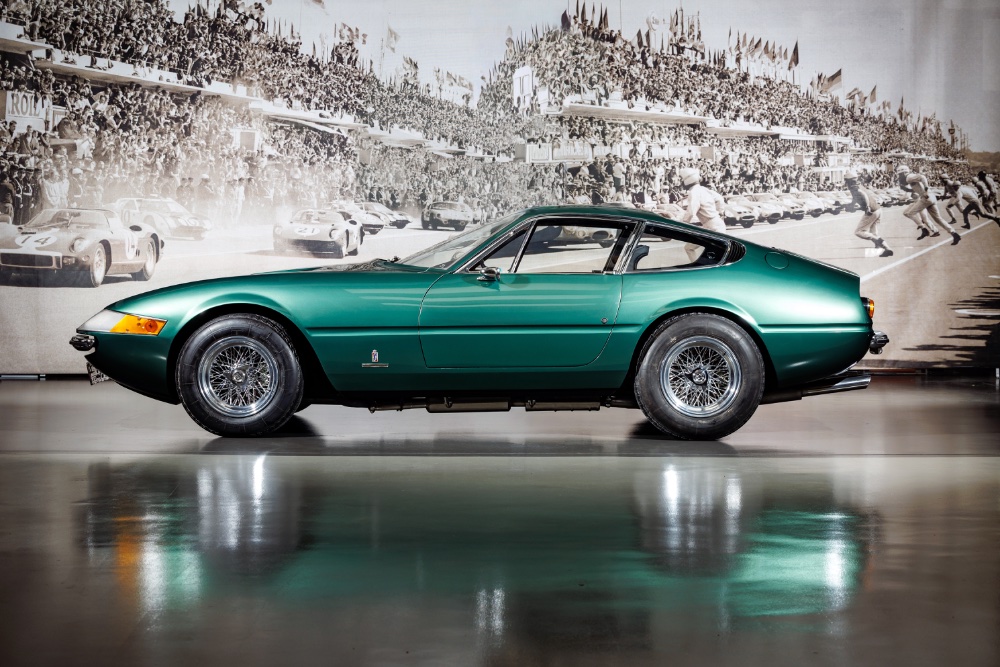 Neuser subsequently sent the Daytona to Italy for restoration to as-new condition, although retaining the aluminium bodywork. Extensive work was undertaken on the mechanical components, including the suspension and electrical system, as well as on the bodywork and interior. The history file contains invoices from 2013 and 2014 totalling more than €85,000, issued by several Modena-based workshops, including Giusti, Luppi, SG Racing di Gianni Sala and Carrozzeria Cristallo. The odometer currently reads 4339 km. The car has been returned to its original colour, Verde Medio 106-G-29. It’s estimated at between €500k and €800k.