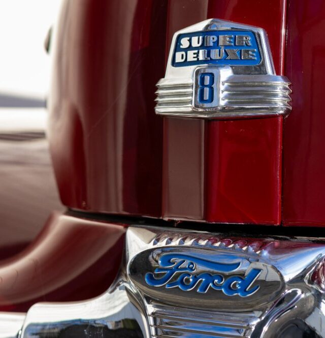 This 1947 Ford Model 79A Super Deluxe Sportsman Convertible was acquired new by a member of the Bacon family, and was among the earliest ‘Woody’ convertibles ever produced. Rare in its day and even rarer now, the Super Deluxe was the top-of-the-line model in the Ford range of the day. The Sportsman package added premium leather seats, a convertible top and bespoke chrome trim over a standard Deluxe.