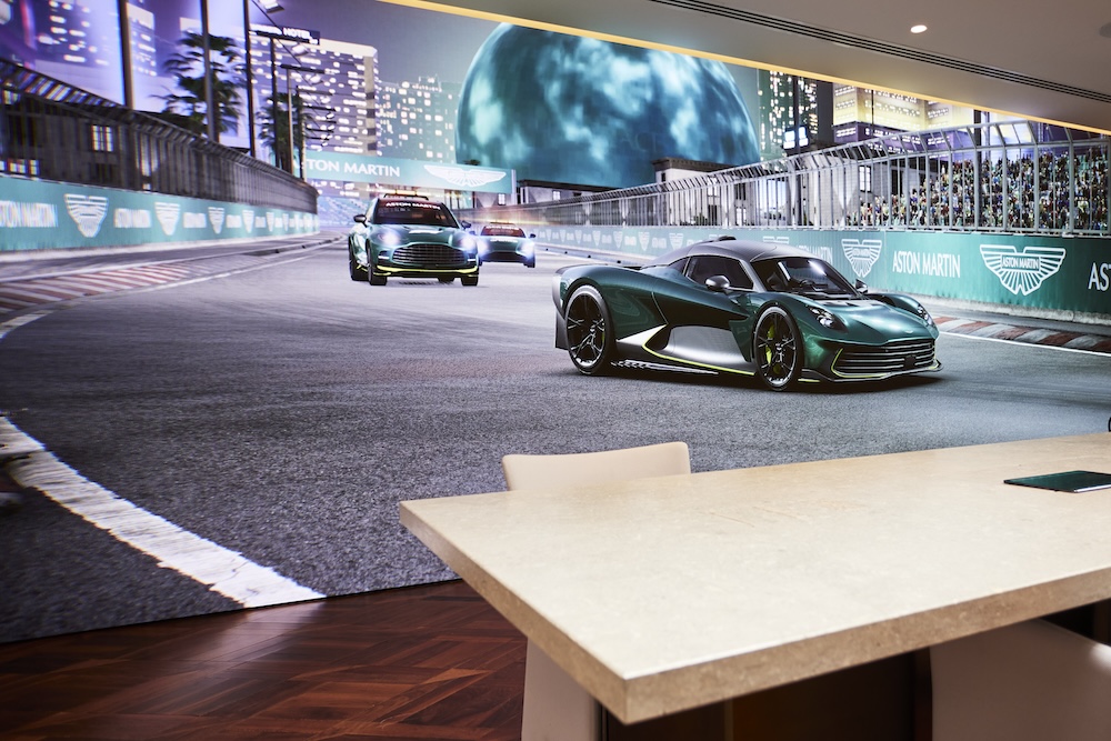 Join us, then, in one of Aston Martin’s two new bespoking rooms just off the revamped reception at the Gaydon factory. There will be more of these, around the globe. Close the door and you’ve entered a weird world of ultra luxury and high tech, cut off from reality; behind you is a wall of paint and material samples, in front of you a laptop and a huge screen. No, make that a HUGE screen, 7.5m x 2.8m, of the most remarkable resolution. It’s on this screen that your Valhalla will come to life, with the help of the Aston Martin in-house designer accompanying you – in my case, Tom.