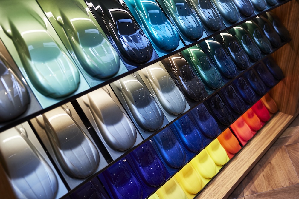 Are we done? Well, seeing as I’m such a special customer, I get another go. This time, with apologies, I choose orange but very much not McLaren Papaya. Tom persuades me to be more adventurous with the colour contrasts, so the sides are left in satin black with a gloss black roof and I add (I’m rather proud of this) a blue pinstripe along the lower edges of the sills.