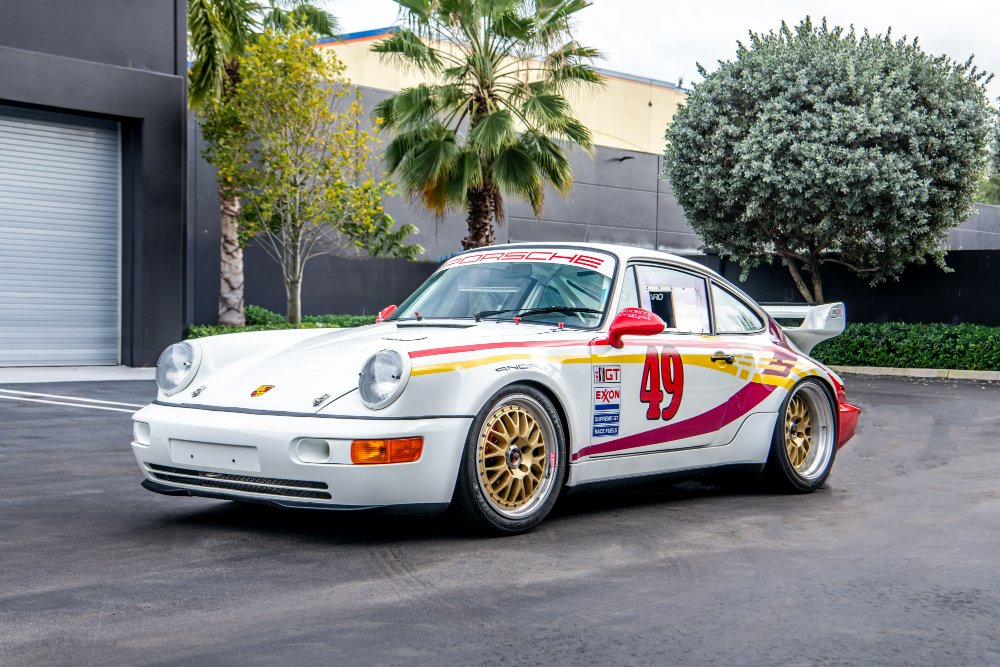 This 1993 Porsche 911 Carrera RSR 3.8, chassis 496081, was ordered by privateer racer Mark Sandridge of Westfield Center, Ohio. Finished in Grand Prix White and entered by Sandridge under the Team Salad name, the RSR competed in the 1994 IMSA GT season with a number of notable results. These included second in class and fourth overall at the Daytona 24 Hours, along with class victories at Sebring and Watkins Glen. Over the course of the season, these results contributed to Sandridge securing the IMSA GT2 Championship, second place in the Exxon Championship and second in class in the World Porsche Cup.