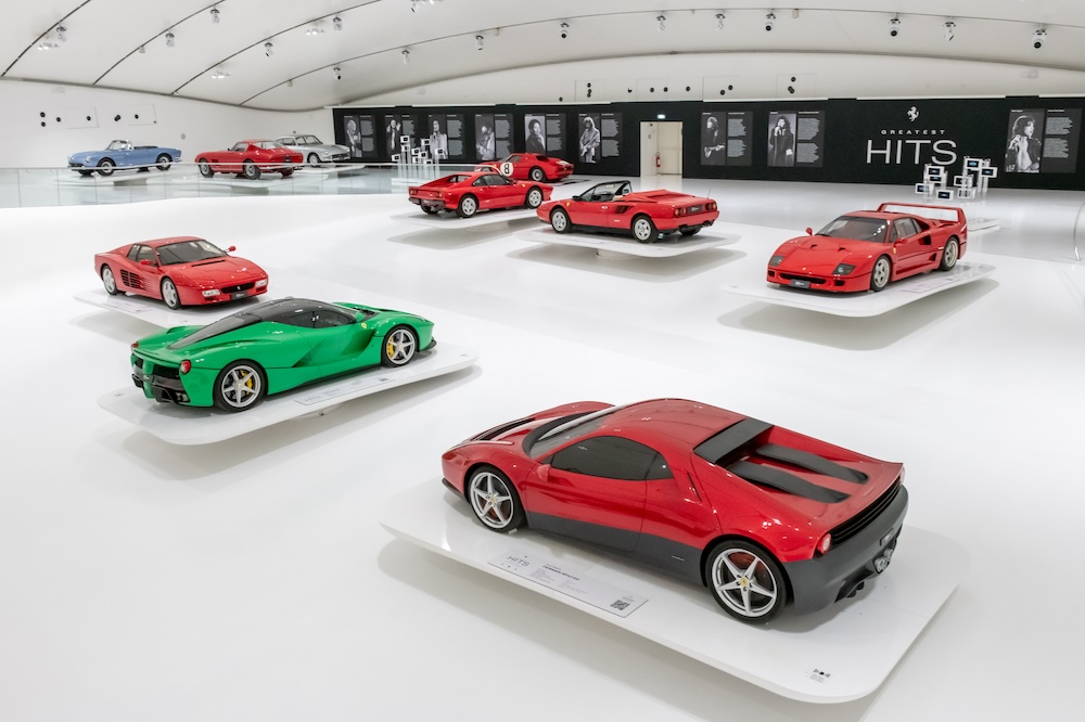 Other star cars include 288 GTO (Mick Jagger), 330 GT 2+2 (John Lennon), 275 GTS (Gino Paoli), 275 GTB4 (Miles Davis), 250 GT California Spyder (Maria Del Monaco), 250 GT (Maria Callas), 250 GT Lusso (Herbert von Karajan), SF90 XX Stradale (Swizz Beatz), F1 2001 (JJ Lin)12Cilindri (Jay Chou), a Mondial to represent one of the cars used in a Madonna video, and the full-size styling clay created for Eric Clapton’s one-off 2012 SP12 EC.