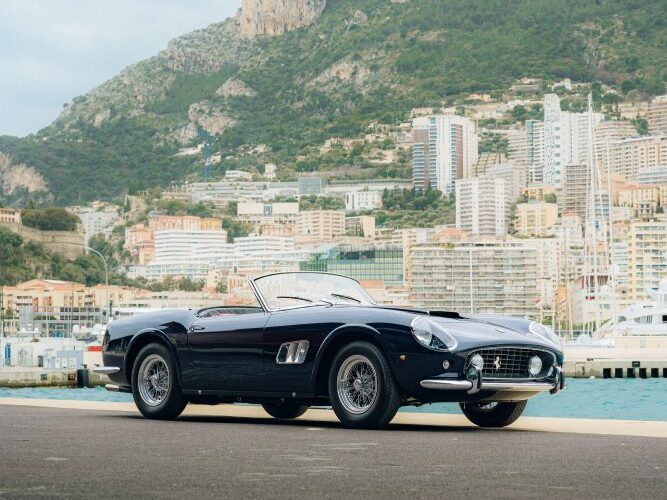 RM Sotheby’s sale at the Monaco auctions 2026 was almost twice the size of Bonhams, and stacked to the rafters with more modern Ferraris, the current focus of auction excitement. Yet it was another Ferrari, this time from the Enzo era, that took star billing and, in the end, the highest-value sale of the whole weekend – a world record to boot. The above 1961 Ferrari 250 GT SWB California Spyder, chassis 2955 GT, is the 26th example built. It was completed in September 1961 in Bianco Saratoga over Nero leather and delivered to Auto Becker of Düsseldorf, where it was displayed at the Frankfurt Motor Show, establishing its status as a period show car.