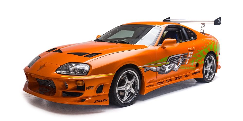 Among the headline acts is the 1993 Toyota Supra Stunt #3, driven by Paul Walker as Brian O’Conner in The Fast and the Furious. Finished in Lamborghini Diablo Candy Orange, it was immortalised in one of modern cinema’s most quoted closing scenes. Alongside it sits the acid-green 1995 Mitsubishi Eclipse from the opening street race of the same film, the sequence that introduced NOS purges, neon underglow and wide-body theatrics to multiplex audiences worldwide.