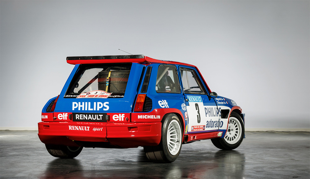 The car offered lacks identification plates and registration, but it was transferred to Renault Heritage in 1990 as ‘Maquette 3’. It is, however, a functional prototype, having been driven 7000 km, with previous mounting points for identification plates visible. While currently missing its engine and fuel tanks, it retains the Maxi 5 Turbo’s polyester, Kevlar and aluminium bodywork, magnesium wheels, suspension, wiring loom and a largely complete interior including an aluminium roll cage, dashboard, hydraulic handbrake and brake balance control. Examination reveals a Tour de Corse bodyshell modified to Maxi specifications. Key features from the TdC remain, including steering, firewall openings, roll cage, turbo placement and rear strut mountings.