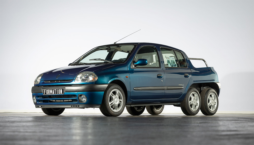 Okay, just one more – and one of our favourite lots from the Artcurial Renault Auction 2025. Based on a Clio II, this vehicle was constructed at the Flins factory in 2001 by production workers as part of their metalwork training. The original Clio was modified at the rear and extended to create an open area, complete with two grab handles. To support the weight of a potential load, a second rear axle was added.