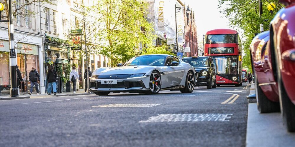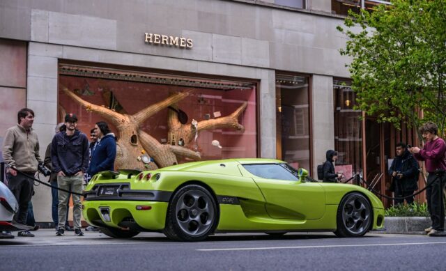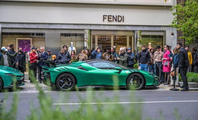 Sloane Street came alive with 25 hypercars, classic cars and restomods. Set against stores such as Fendi, Louis Vuitton, Berluti, Dior, Bottega Veneta and more, the event attracted crowds eager to see cars such as the new Aston Martin Valhalla and Ferrari SF90 XX alongside classics including a McLaren F1 GTR and a Ferrari 250 California.