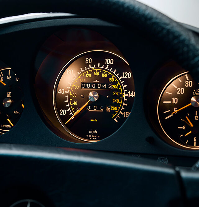 Bought new on November 30, 1982 by Mr Hough, a successful watchmaker, for £24,400 (equivalent to more than £87,000 today), the car was transported to his home in Gnosall, Staffordshire, where it remained untouched in a heated, dehumidified garage for 42 years. Demonstrating his precision and craftsmanship, Mr Hough also produced a hallmarked sterling-silver Mercedes-Benz badge, which still accompanies the vehicle. SLSHOP believes this to be the only original, unregistered 500 SL (R107) in existence outside of the Mercedes-Benz Museum, Stuttgart – and Mr Hough has only agreed to part with the car due to his advancing years.