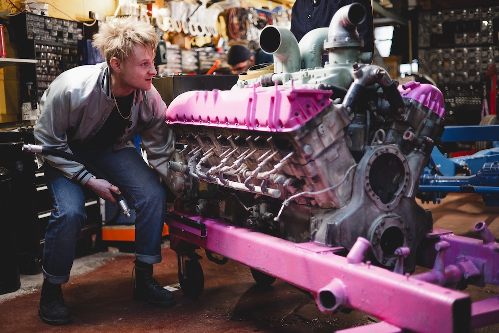But in the car community he’s just as well known for his eccentrically in-your-face videos of classic car restoration and modification. Over the last two years, he’s fully restored a Mini and fitted it with a supercharger, while a second classic Mini acts as his everyday transport – with occasionally unfortunate consequences, such as when it broke down on the way to filming the video for Eins, Zwei, Drei at Pinewood Studios. His hands were so dirty by the time he made it to the studio that the horrified film crew immediately called up a manicurist.