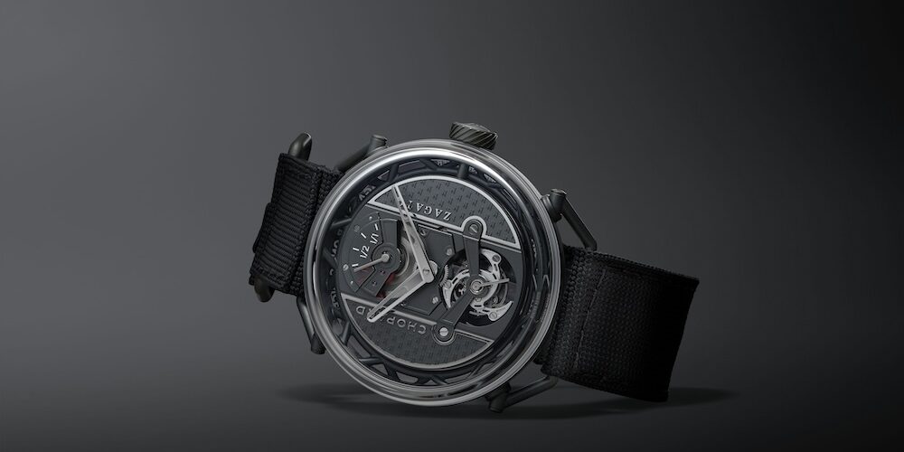 The crown on the side of the case is derived from automotive differential gears and personalised with an engraved steering wheel that has become emblematic of Chopard’s Classic Racing timepieces. The dial is adorned with Zagato’s famous ‘Z’ motif, featuring chamfers enhanced by a rhodium-plated finish, and the rhodium-plated Chopard and Zagato logos are displayed in positive relief. The watch face is topped by a ‘glass box’ sapphire crystal fitted flush with the caseband.
